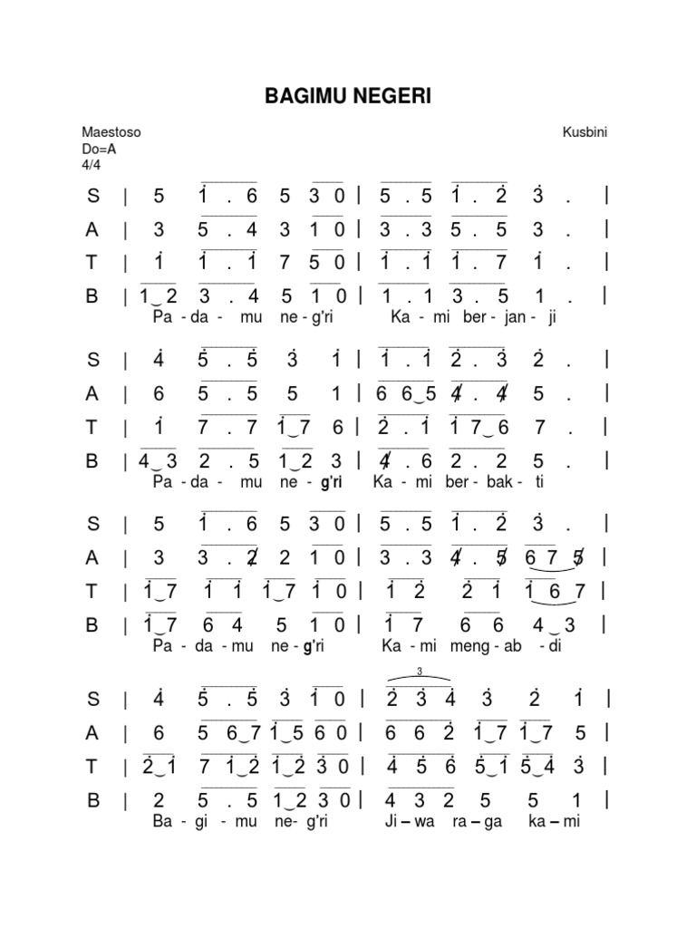 Partitur Paduan Suara Bagimu Negeri Jpg